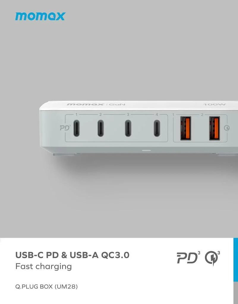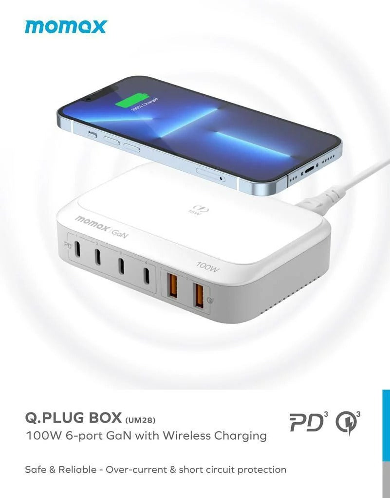 Momax Q.PLUG BOX GaN 100W六輸出連無線充桌面充電器